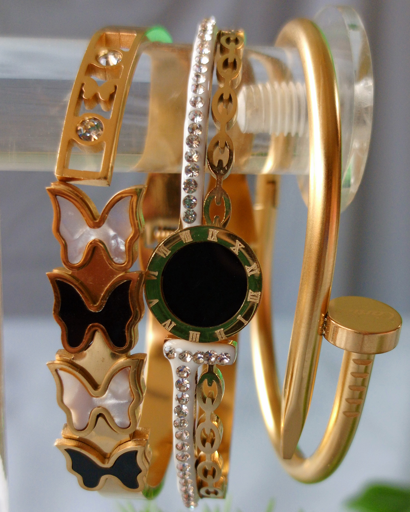 3. 🦋 Butterfly Charm Kara – A playful mix of black, white, and gold butterfly motifs, symbolizing transformation and grace. Perfect for layering or wearing solo for a touch of whimsy.