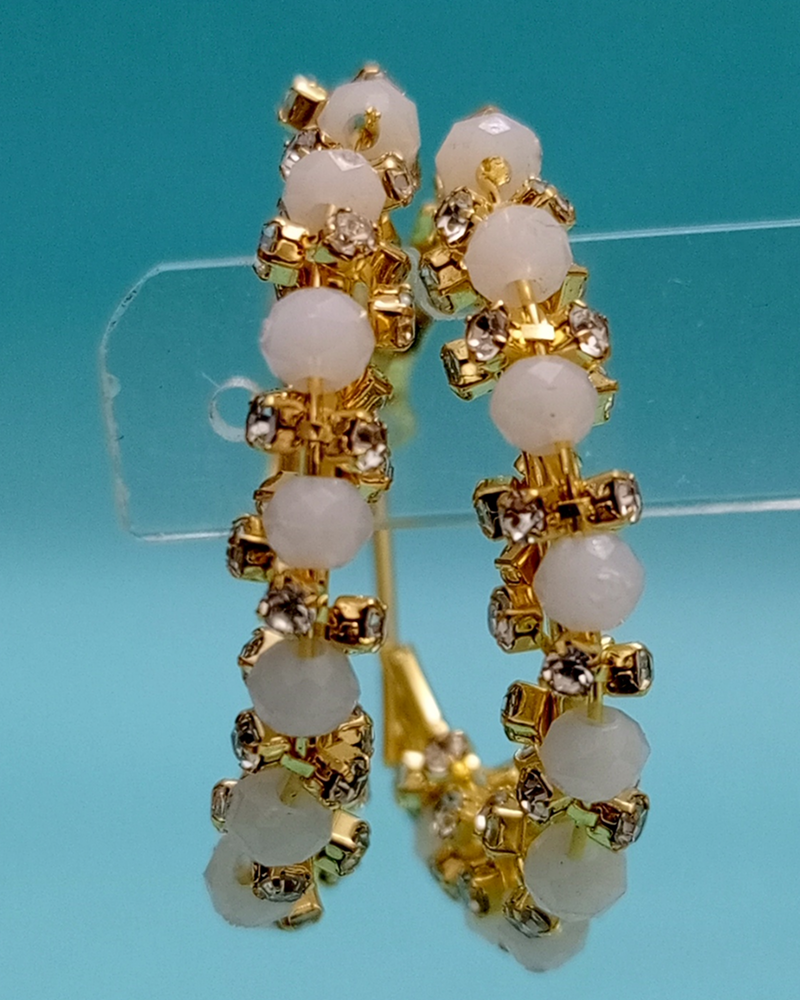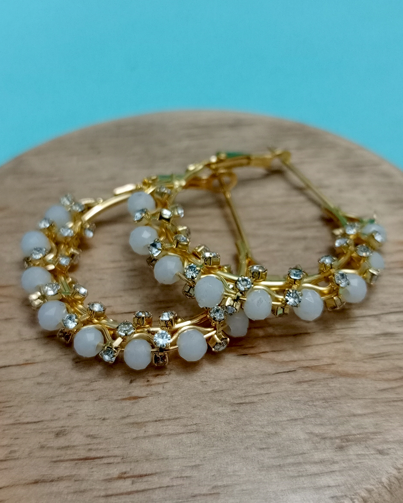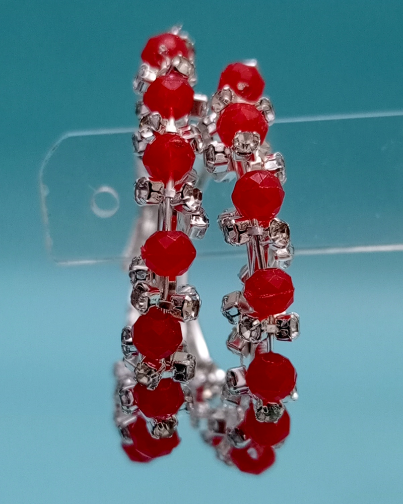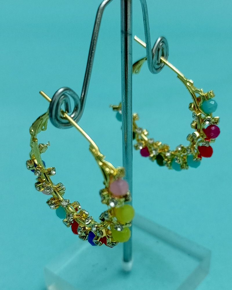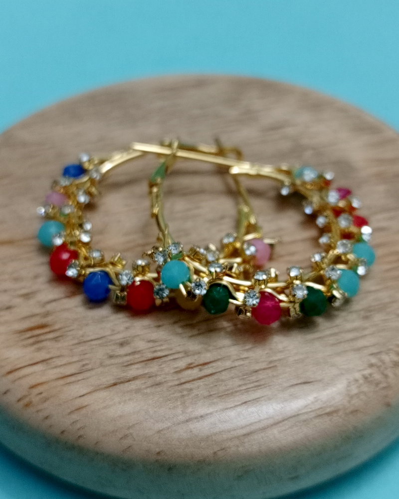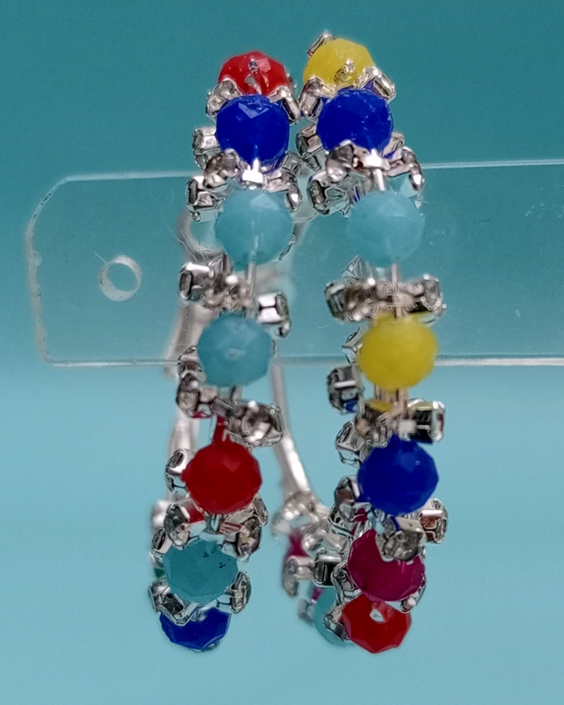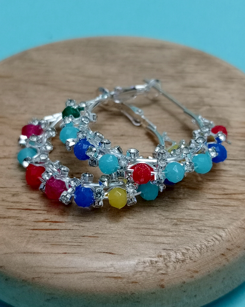 Add a splash of vibrant energy to your style with the Chroma Crystal Hoop Earrings. These eye-catching hoops are meticulously handcrafted, featuring a dazzling combination of faceted crystal beads and shimmering micro-rhinestones. Available in a variety of captivating palettes—from bold multi-color rainbows and deep onyx black to romantic ruby red and ethereal milky white—these earrings are designed to frame your face with light and color. Whether set in a brilliant silver or a radiant gold finish, they are the perfect fusion of playful charm and high-end glamour.