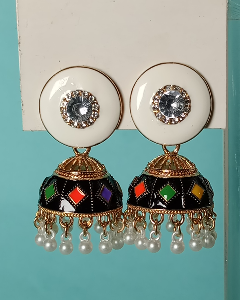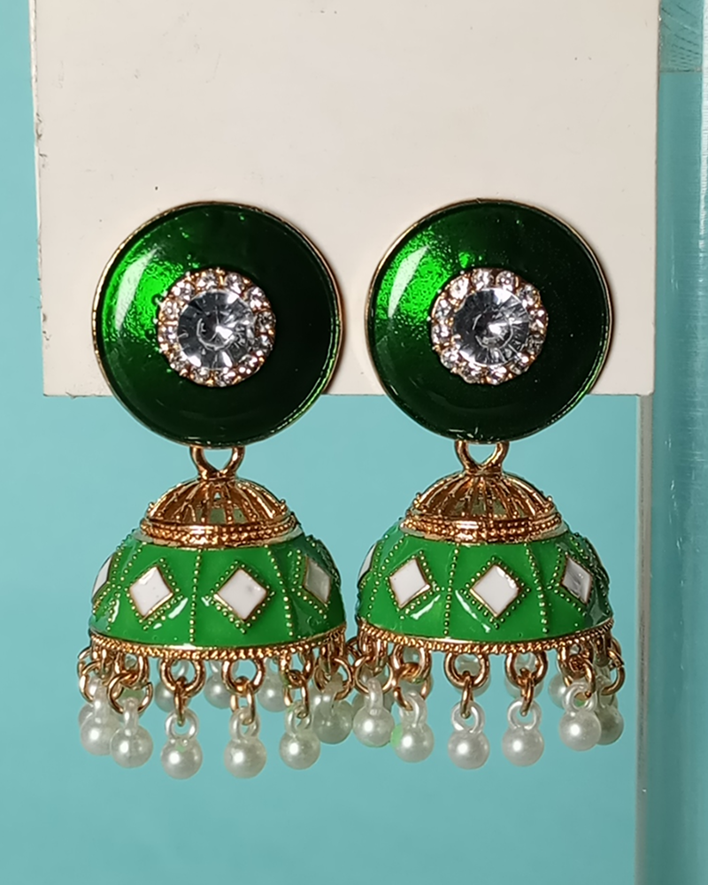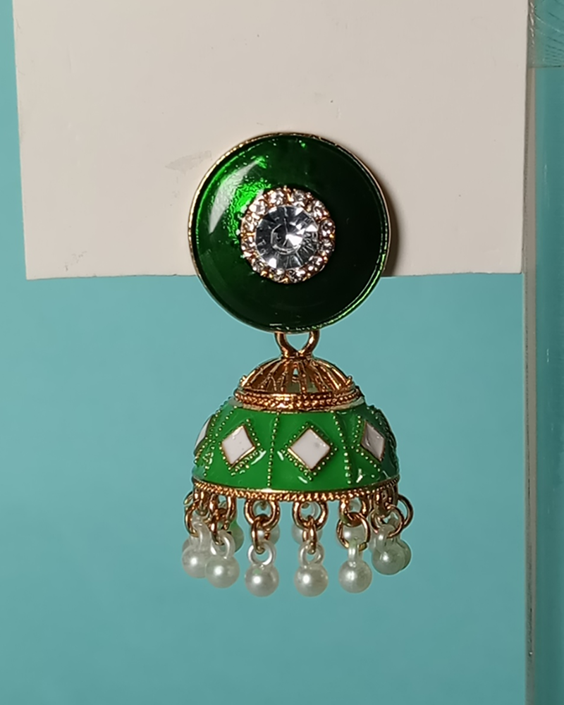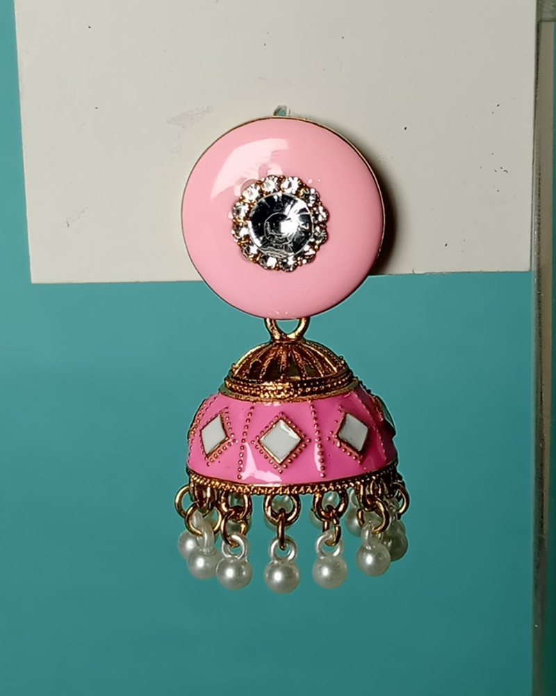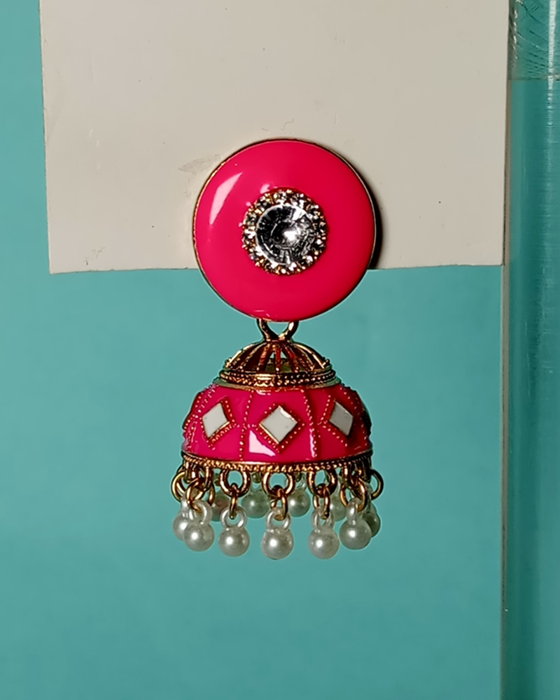 Intricate Filigree Dome: The signature jhumka bell features a complex, lace-like metallic pattern for a sophisticated and airy aesthetic.