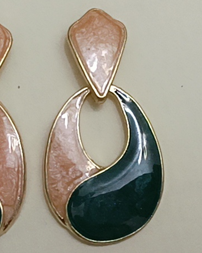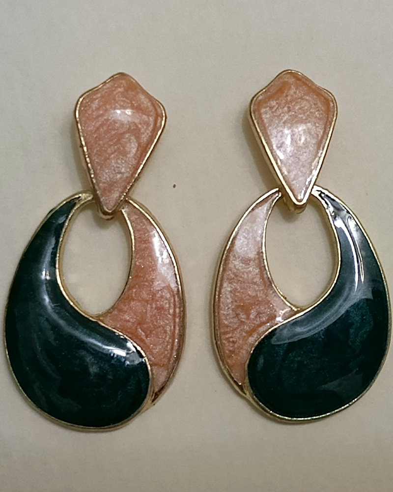 A striking fusion of earthy tones and sculptural elegance, the Terra Contrast Earrings feature marbled peach and deep green enamel framed in flowing gold outlines. The abstract teardrop design and geometric top create a harmonious balance of softness and edge—ideal for statement styling, creative souls, and those who love jewelry with a story.